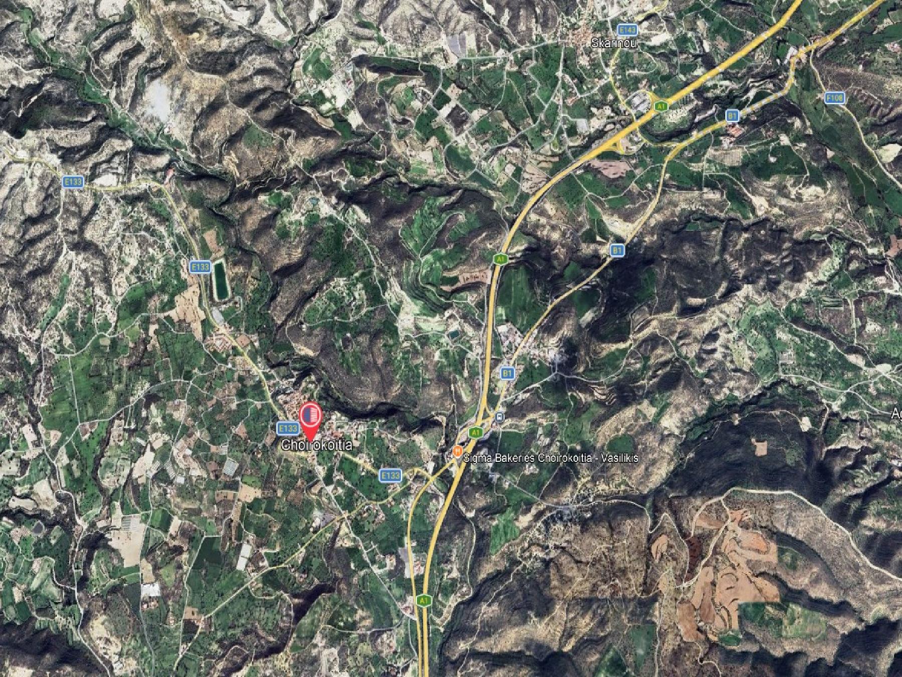 It is a corner plot with an irregular shape, even surface and abuts the connecting road Choirokoitia – Vavlas (Georgiou Griva Digeni street) along its southeastern border with a frontage of approximately 38 meters and on Agios Iakovos Street along its eastern border with a frontage of approximately 48 meters.