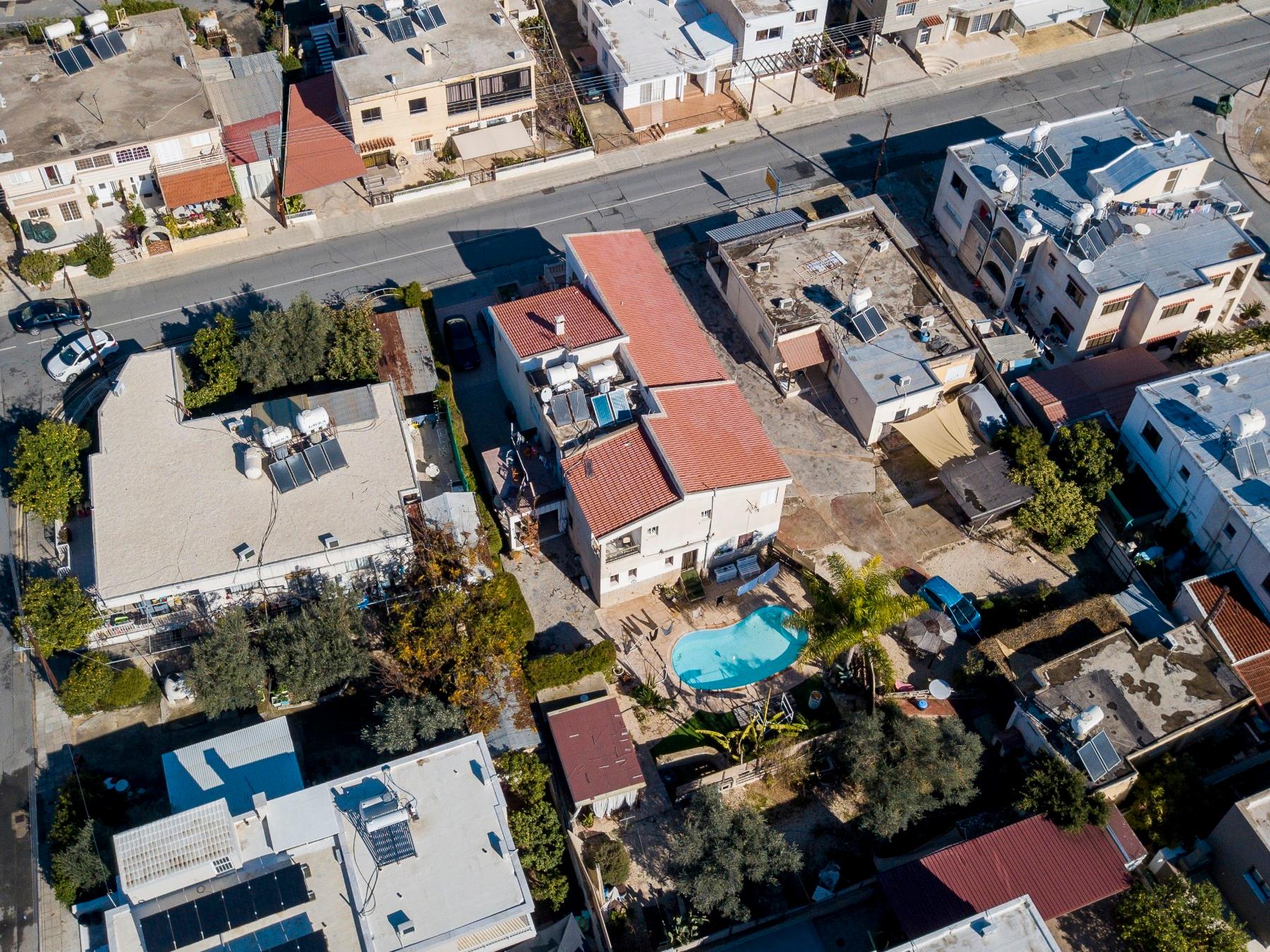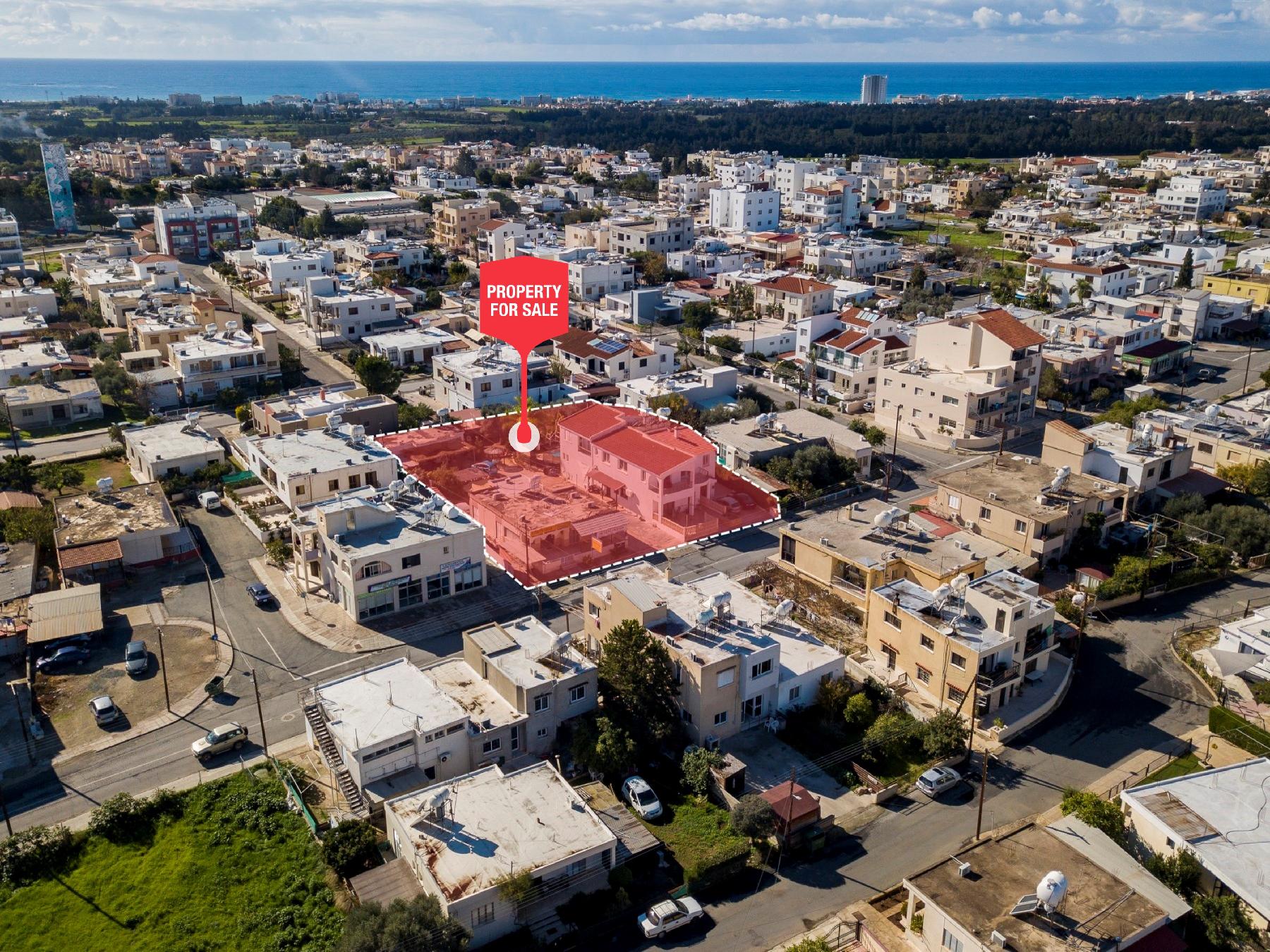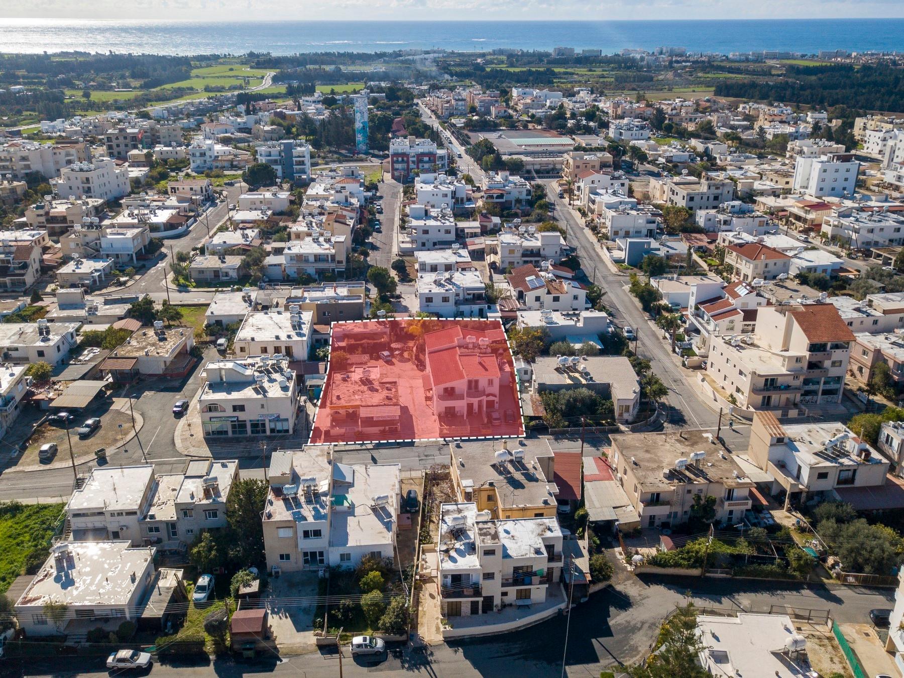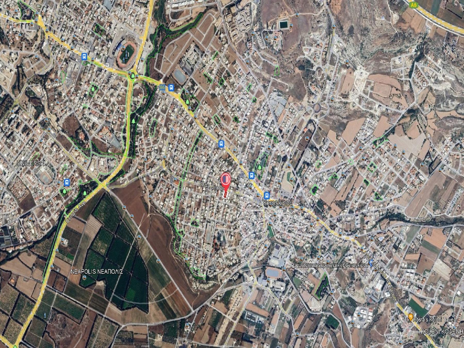 Το ακίνητο προς πώληση αφορά διώροφη ανεξάρτητη κατοικία (δυτικό τμήμα) και ισόγεια ανεξάρτητη κατοικία με βοηθητικά κτήρια (ανατολικό τμήμα), τα οποία βρίσκονται σε μια εξαιρετική και κεντρική τοποθεσία του Δήμου Γεροσκήπου, της Επαρχίας Πάφου. Βρίσκονται επί της Λεωφόρου Γεώργιου Γρίβα Διγενή, σε απόσταση, περί τα 575 μέτρα βορειοδυτικά από το Γυμνάσιο Γεροσκήπου και περί τα 185 μέτρα βόρεια από το Β’ Δημοτικό Σχολείο Γεροσκήπου.