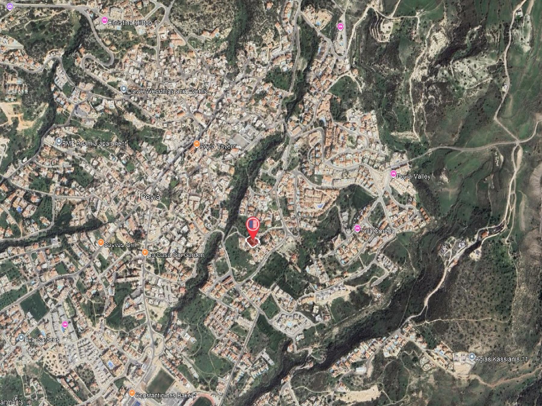 Μία ισόγεια πετρόκτιστη κατοικία και μια διώροφη ανεξάρτητη κατοικία οι οποίες αφορούν το 1/2 μερίδιο, τα οποία αντιστοιχούν σε εμβαδόν γης περί τα 669τ.μ., του Δήμου Πέγειας, στην επαρχία Πάφου σε απόσταση, περί τα 465 μέτρα νοτιοανατολικά από το κέντρο του Δήμου.