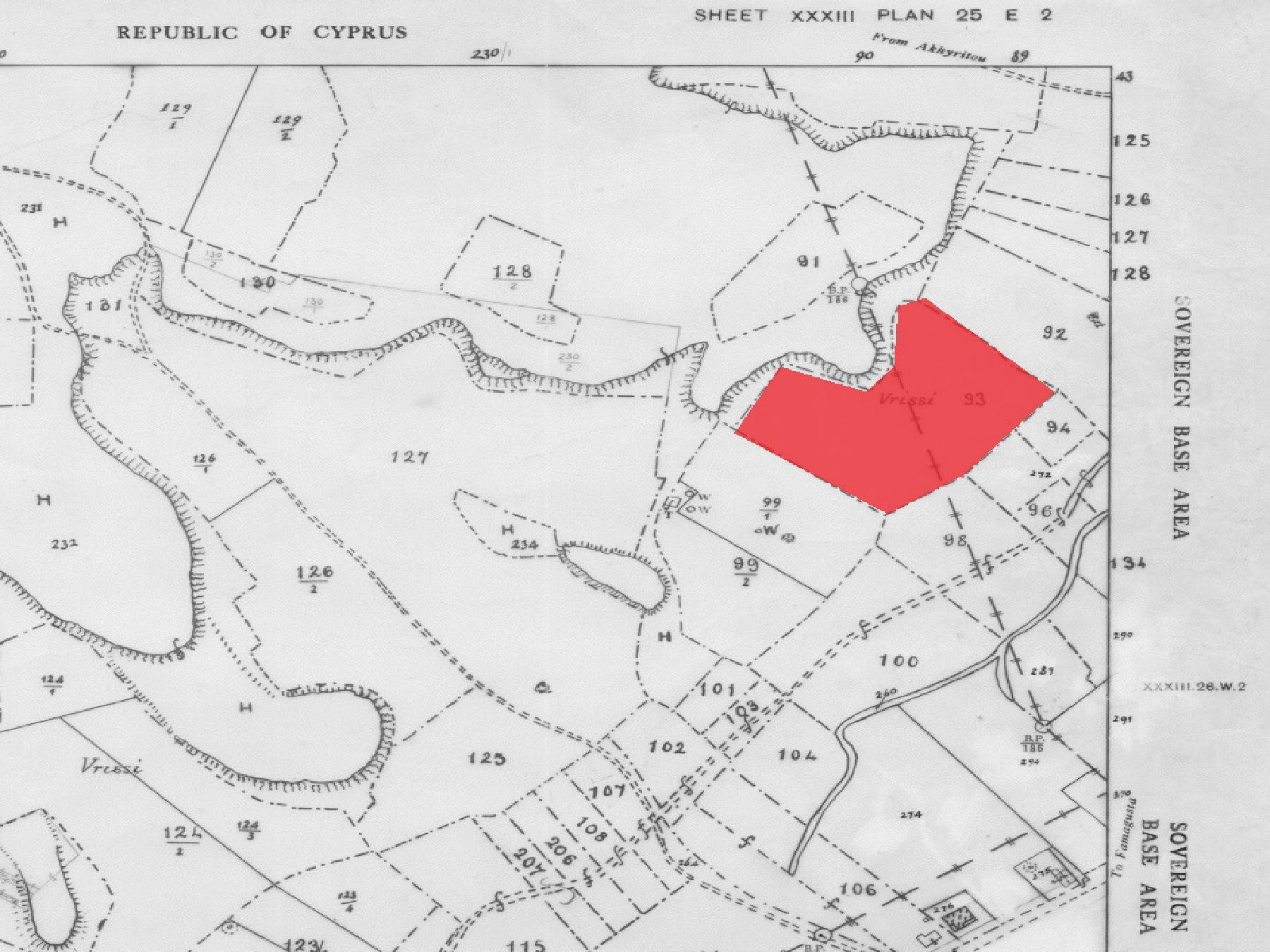 Διατίθεται προς πώληση 1/5 μερίδιο χωραφιού που αναλογεί σε εμβαδόν περί τα 2,274 τ.μ. στην κοινότητα Αχερίτου της επαρχίας Αμμοχώστου. Βρίσκεται σε απόσταση περί τα 1.5 χλμ. βορειοανατολικά από την εκκλησία Αγίων Κωνσταντίνου και Ελένης και περί τα 240 μέτρα βόρεια από τη Λεωφόρο Αχερίτου.