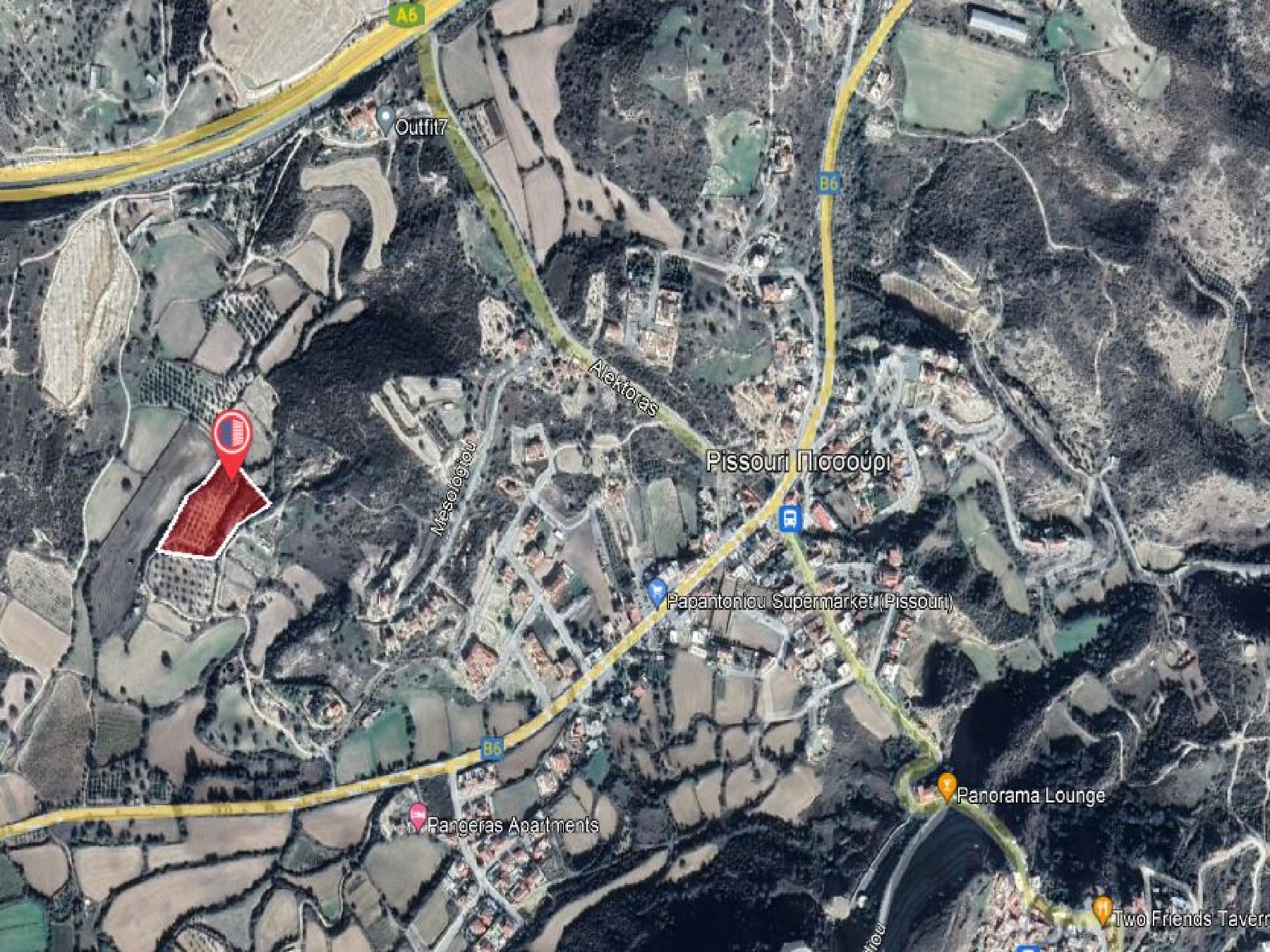 Οικιστικό χωράφι προς πώληση στην κοινότητα Πισσούρι της Επαρχίας Λεμεσού. Βρίσκεται περί τα 680 μέτρα δυτικά από το κέντρο της κοινότητας και περί τα 360 μέτρα νότια από τον αυτοκινητόδρομο Λεμεσος – Πάφος.