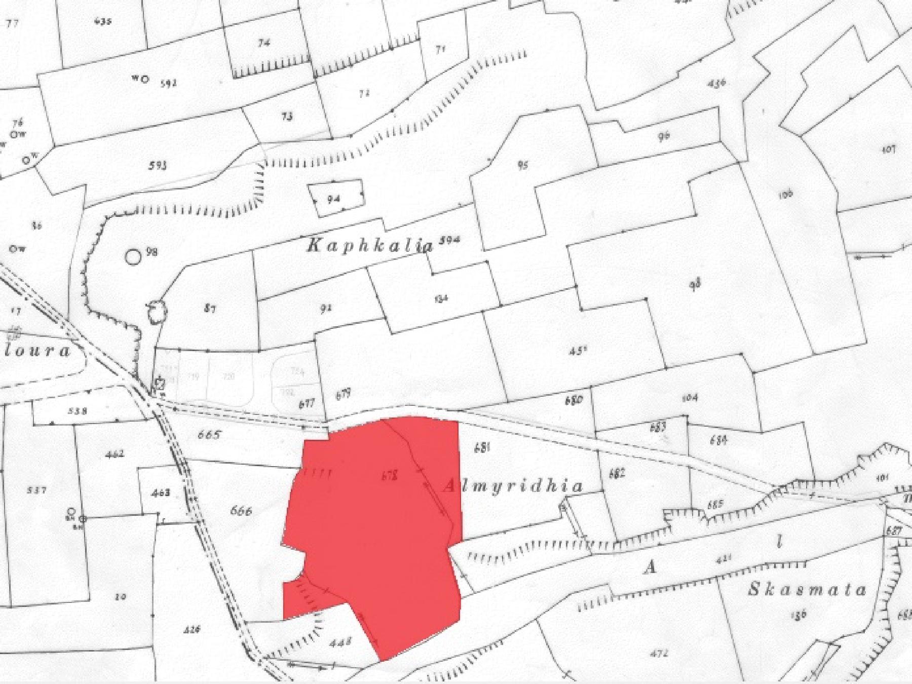 Διατίθενται προς πώληση τα κεντρικά 3/8 μερίδια σε οικιστικό χωράφι τα οποία αναλογούν σε εμβαδό περί τα 4,633 τ.μ.