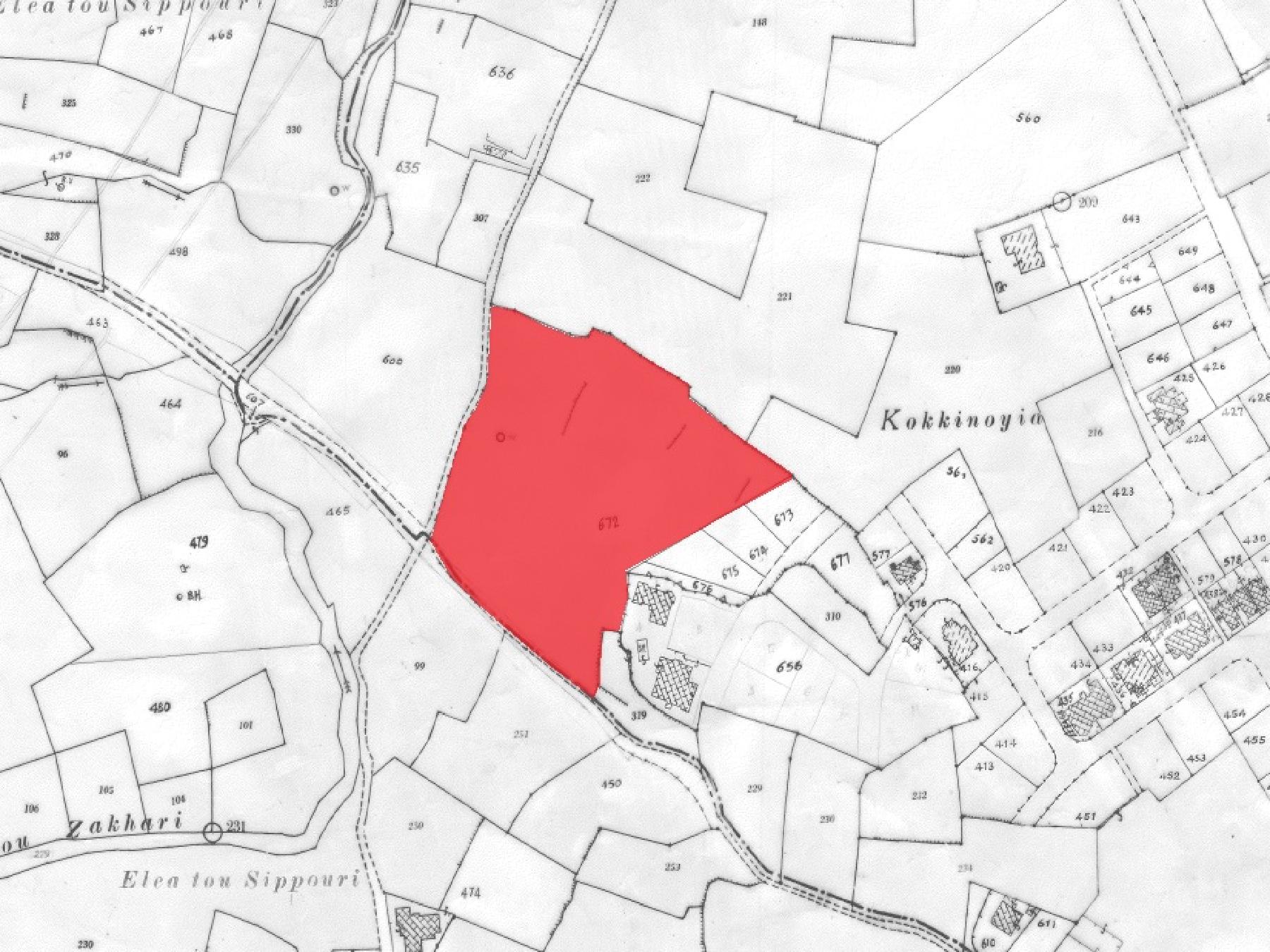 Σημειώνεται ότι το ακίνητο διαθέτει συμφωνία διανομής και το προς πώληση μερίδιο αφορά το νοτιοανατολικό μέρος του ακινήτου που φαίνεται με κόκκινο χρώμα.