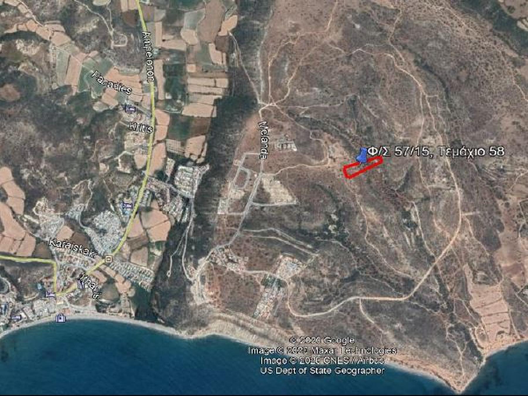 Το χωράφι είναι περίκλειστο, διαθέτει θέα προς την θάλασσα και τοποθετείται περί τα 300 μέτρα νοτιοανατολικά από εγγεγραμμένο δρόμο. Το μέγεθος του τεμαχίου, το καθιστά κατάλληλο για την ανάπτυξη τουριστικού συγκροτήματος.