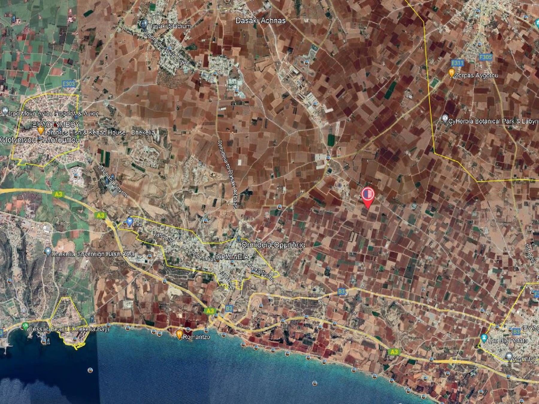 Field in a Land Consolidation Area in Ormideia community, in Larnaca District. It is situated 1.7 kilometers (approx.) north of the main road Ormideia - Xylotympou and 2.7 kilometers (approx.) northeast of the A’ Primary School.