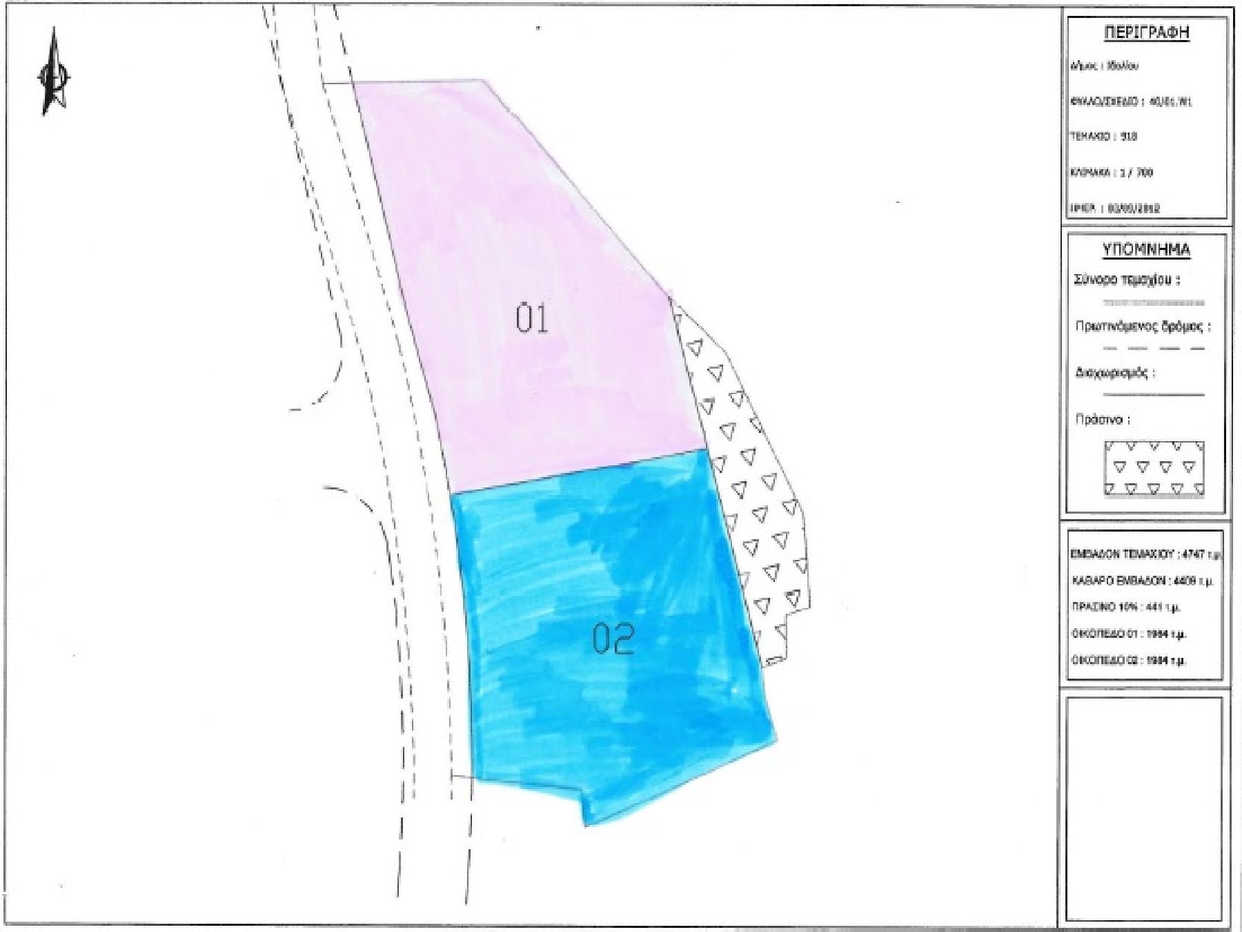 The southern part of the parcel, corresponds to the share available for sale (number 02 and blue color in the design).