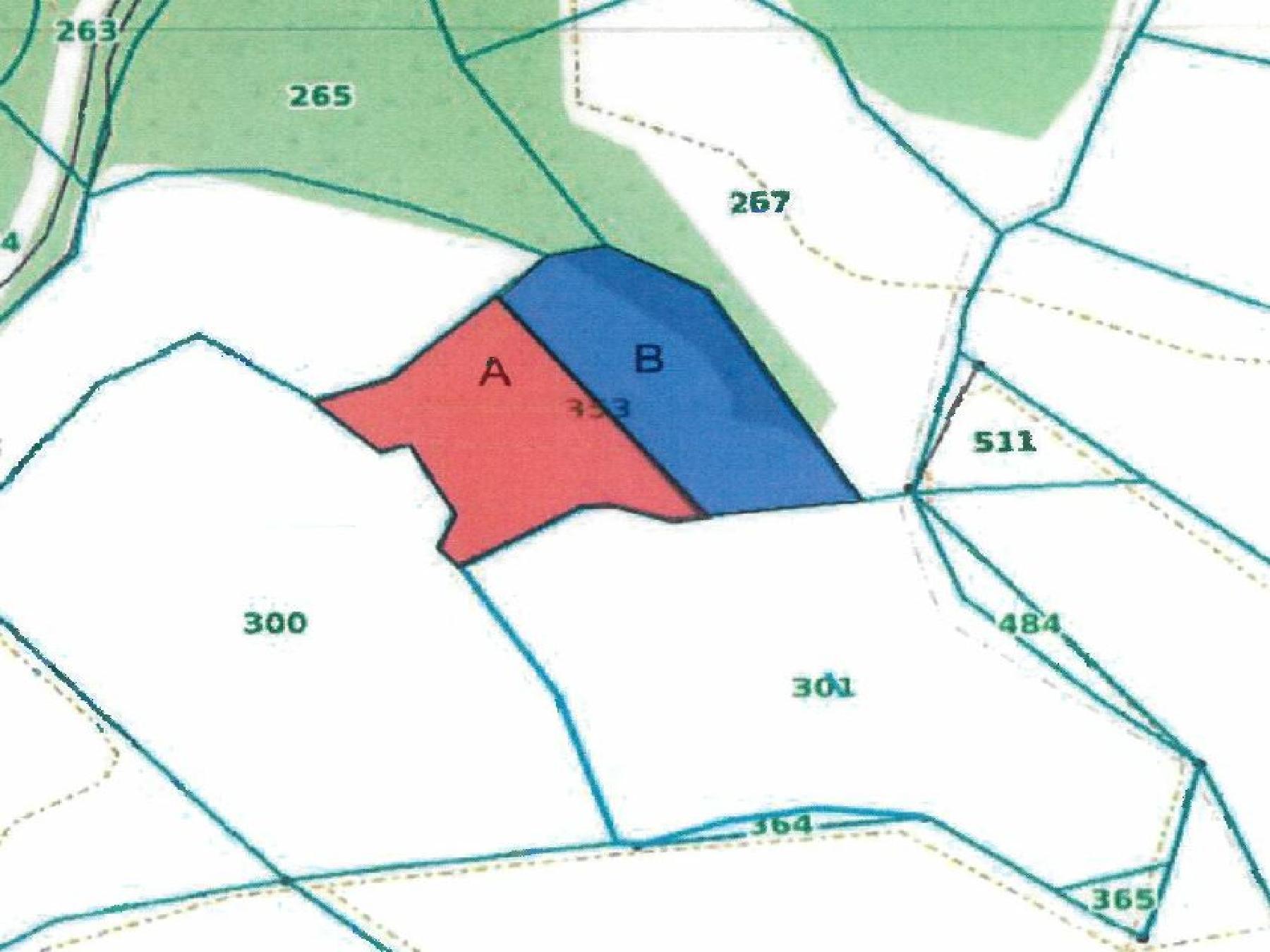 The field has an irregular shape and sloping land surface. The property can be accessed via a non-registered dirt road.